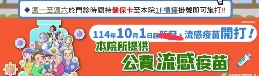 自114年10月1日起,本院提供公費流感疫苗施打服務。