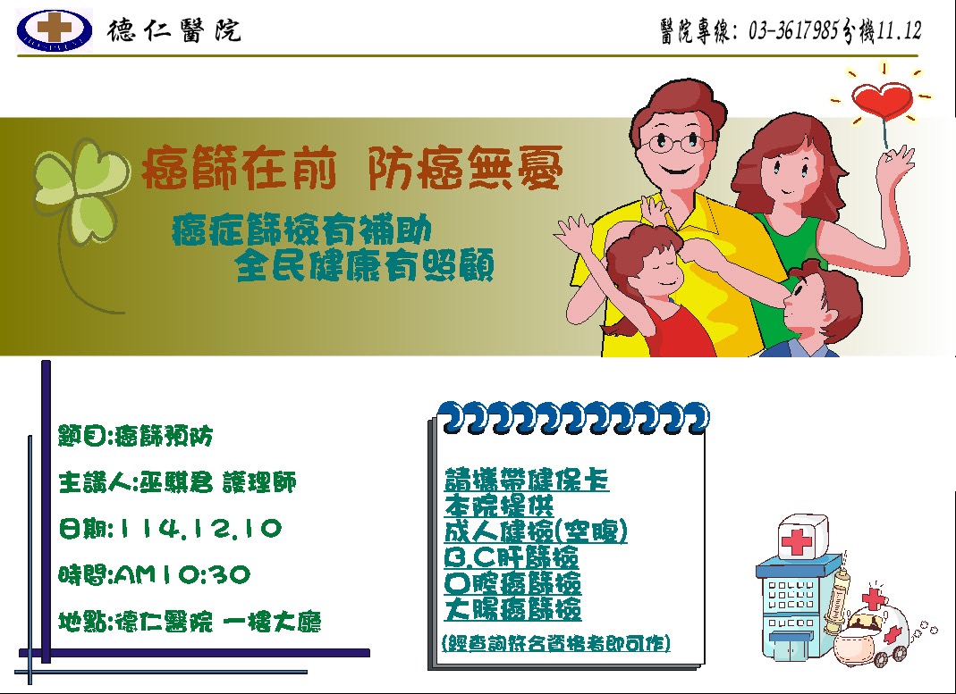12/10德仁醫院健康講座:癌篩在前,防癌無憂