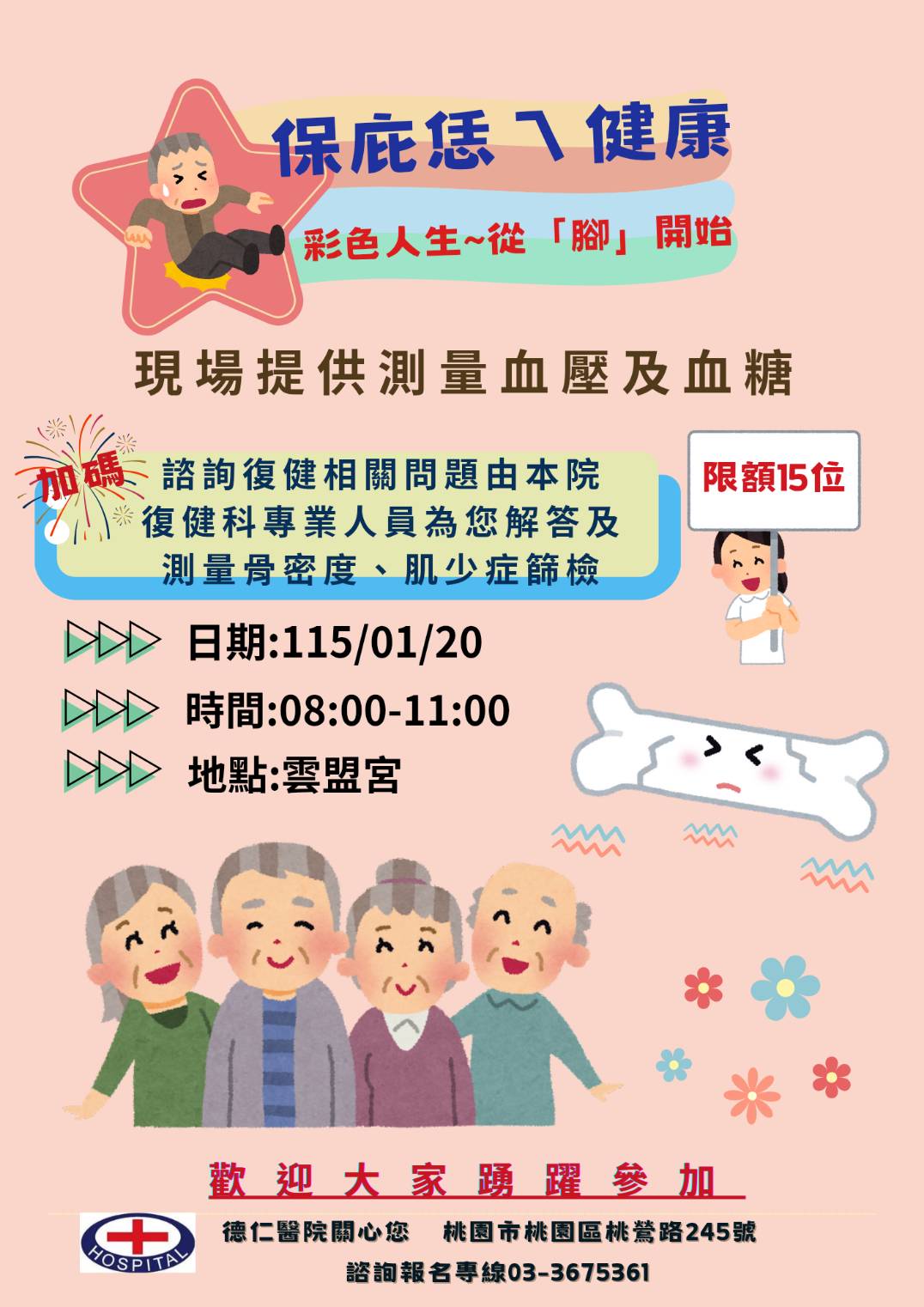 01/20德仁醫院巡診地點/時間: 雲盟宮 08:00~11:00